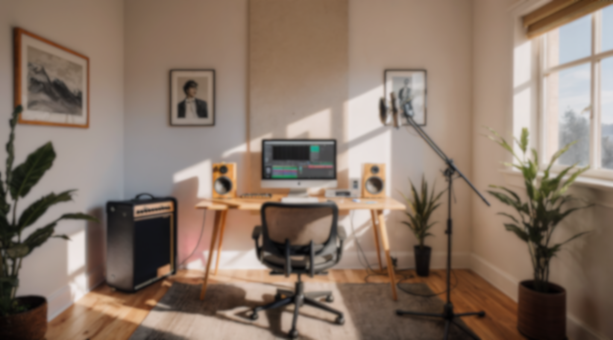 A professional recording session with industry standard home studio recording equipment and a remote audio engineer.
